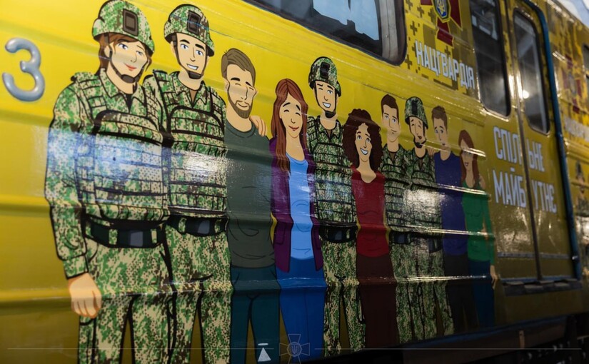 Допоможіть журналістам Vgorode.ua виконувати свою роботу. Підтримайте фінансово >>> ❤Фактично кожна поїздка в такому вагоні має нагадувати пасажирам про роль гвардійців і про те, що тил і фронт залишаються частинами однієї системи.