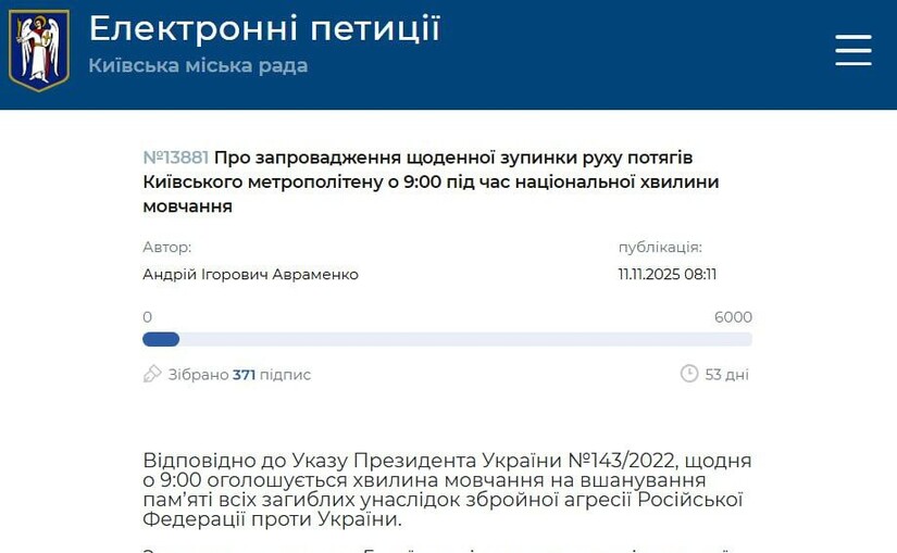 У Києві пропонують щодня зупиняти метро на хвилину мовчання