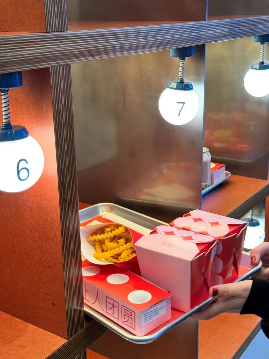 Технологія закладу дозволяє отримувати страви дуже швидко. Крім того, гостям рекомендують скористатися застосунком China Hi, який доступний у сторах. Він дозволяє замовляти завчасно на зручний час, при цьому перше замовлення отримує знижку 20%. Також можна оформити замовлення через термінали або на касі. Після приготування застосунок надсилає пуш-повідомлення, а готові страви можна забрати у спеціальних комірках-стелажах.